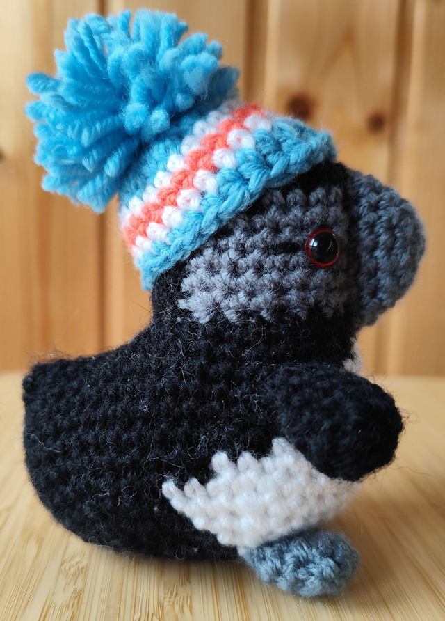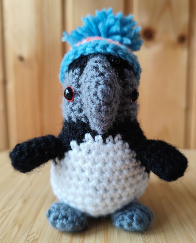 Birdie the small size baby puffin with Icelandic hat (pale colours), (made from merino wool yarn)