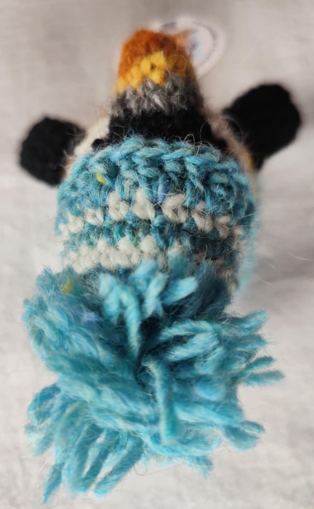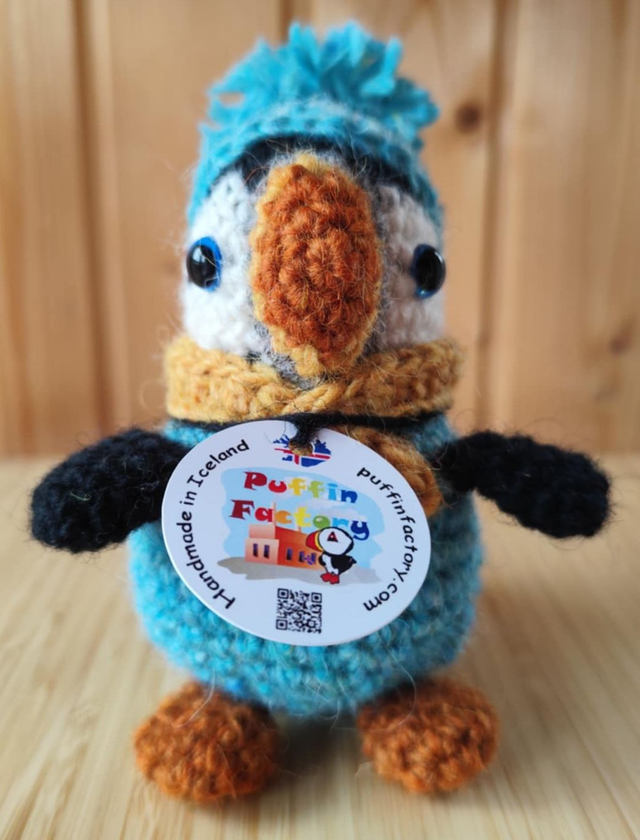 Introducing our handmade crochet puffin, made in Iceland with love and care. This adorable puffin stands at 15cm in height with a width of 11cm and depth of 11m, making it the perfect size for any shelf or desk! Handcrafted with high-quality materials, this puffin boasts intricate details and vibrant colours that are sure to brighten up any space. Our crochet puffin makes for a unique gift idea or a fun addition to any collection. Not only is it cute and cuddly, but it also represents the beauty of Iceland's wildlife, making it a must-have keepsake.