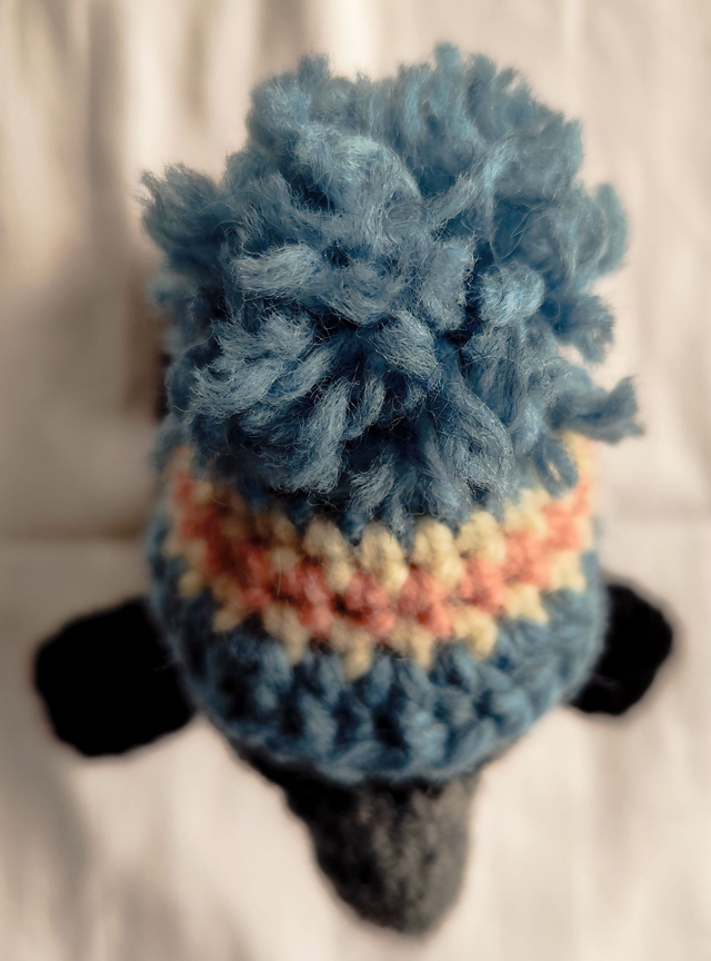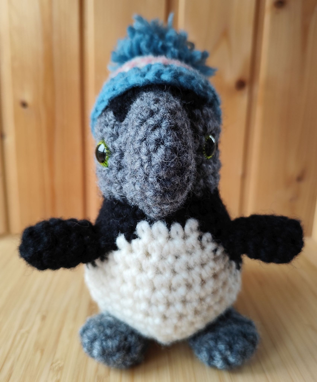Buddy the large size baby puffin with Icelandic hat (pale colours), (made from Norwegian wool yarn)