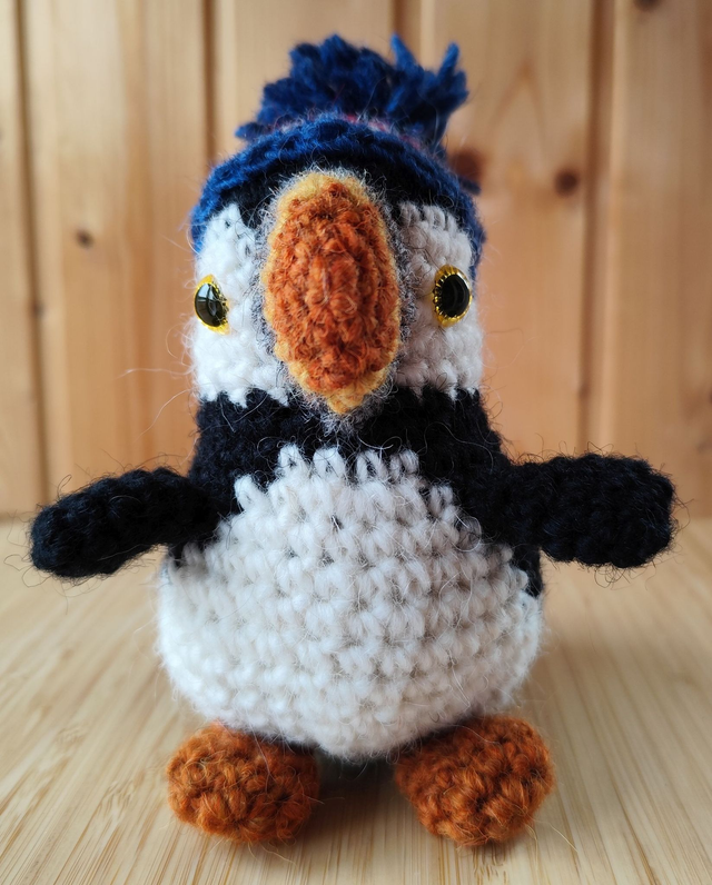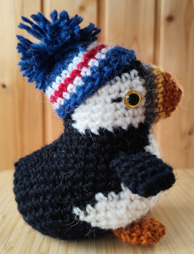 Lucky the puffin with Icelandic hat, medium size (made from Icelandic wool yarn)
